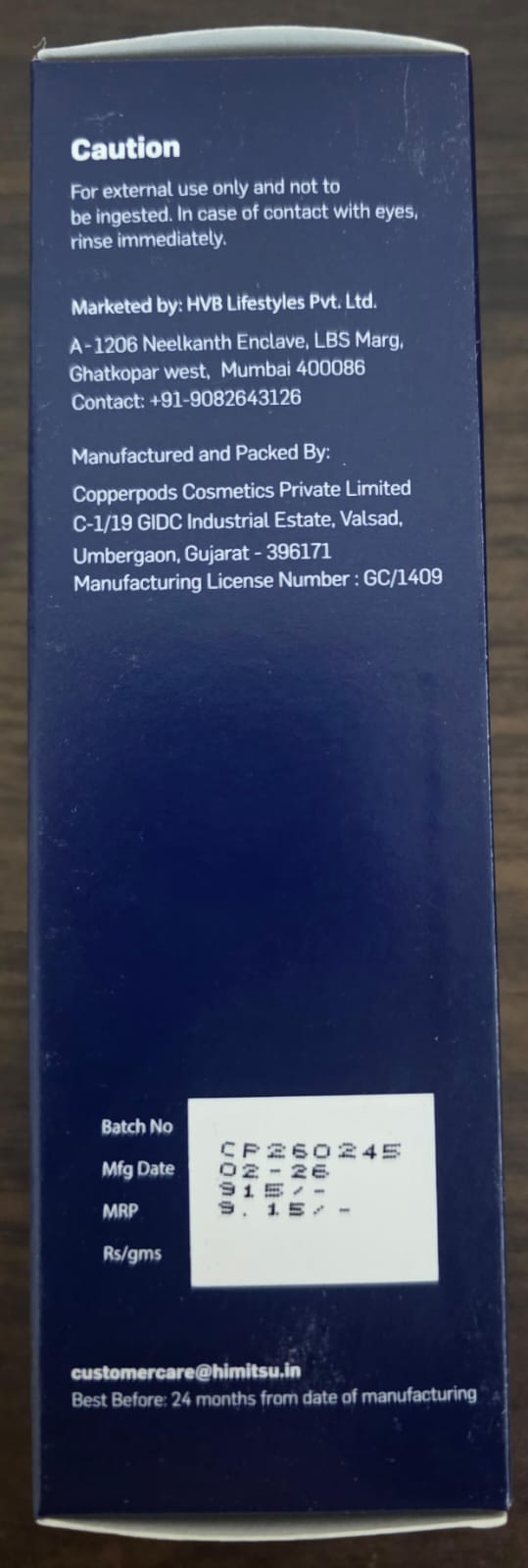 This Product is Marketed by: HVB Lifestyles Pvt. Ltd.